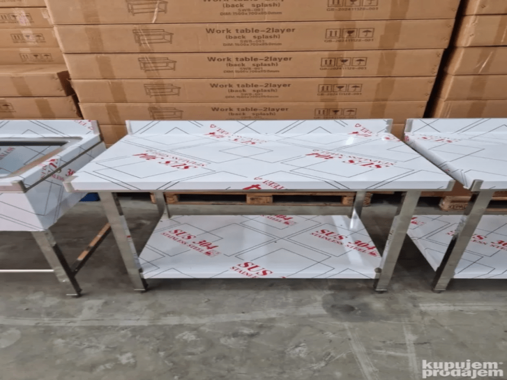 Prohroromski- Inox radni stolovi izrađeni od kiselootpornog prohroma 304, debljina materijala 1mm, izuzetno snažni i izdržljivi.